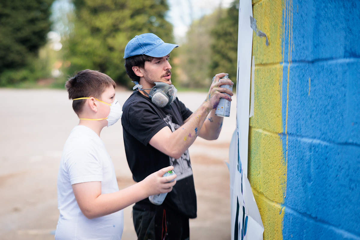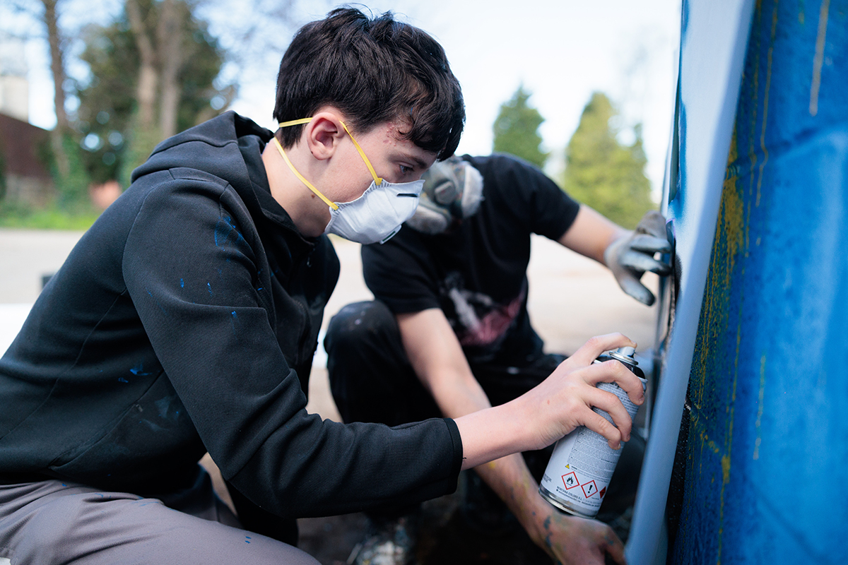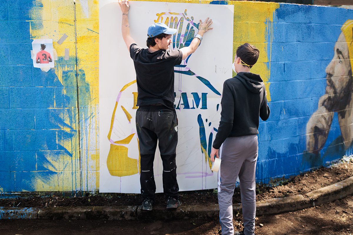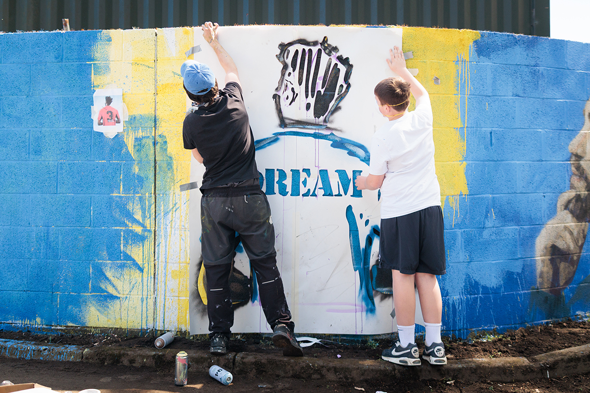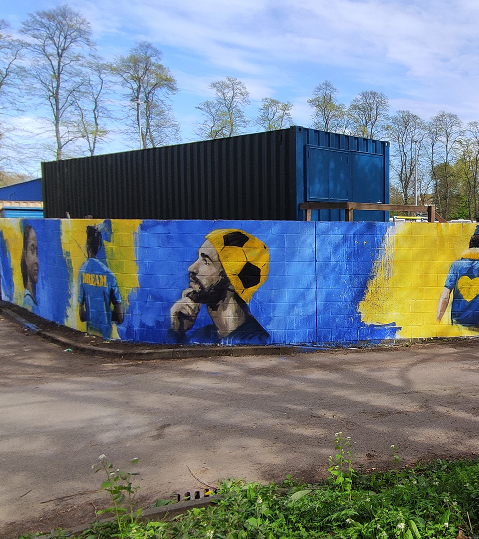 Street art project for creating inclusive, community-centered artwork that speaks to shared experiences to transform public spaces. Through a series of workshops in primary schools, we explored themes of community, belonging, and identity through books and literature, which led to the first mural at Tadcaster Public Library. The second was created in collaboration with youth groups at Tadcaster Barn, a youth community centre, and the third with members of Tadcaster Albion Football Club. Each artwork reflects a unique facet of the town’s character and environment.