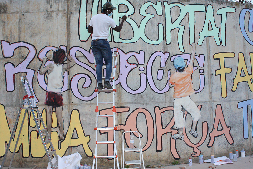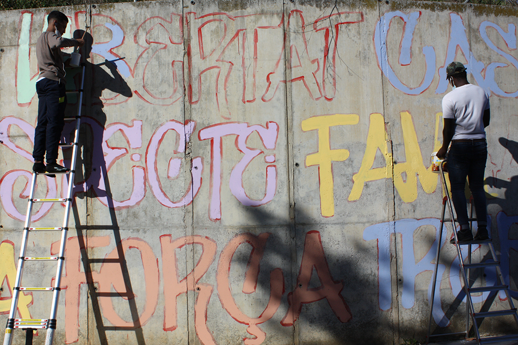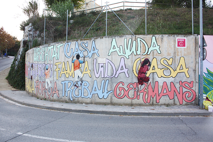 “Reduced Inequalities” was the SDG (Sustainable Development Goals) in which we worked together with Associació Hebe for the mural curated for Festival Tianart. It was a participative and collaborative process we had with the youth migrant group from Associació Hebe, in which we planned and worked together around this issue.