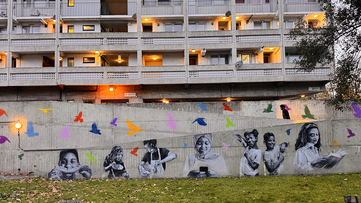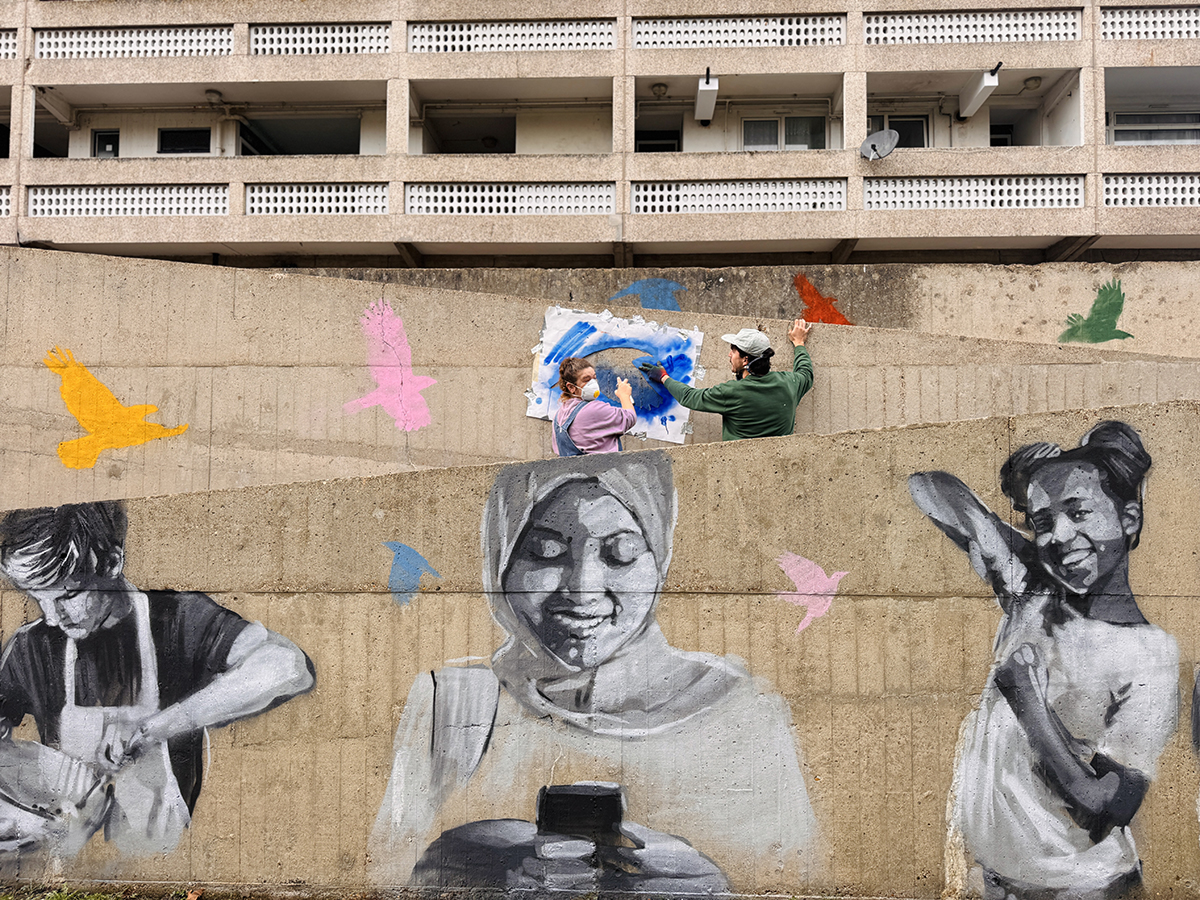 The mural is a vibrant celebration of community, culture, and place. Developed through extensive research and community workshops, it was painted during the half-term holidays together with young people from Alton State. Inspired by their ideas, the colourful birds reflect their energy, dreams, and creativity, symbolising the joyful and vibrant spirit of the community.